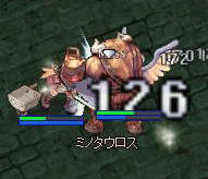 未だにやかんかよ・・・・と笑われるかもしれませんが、ミノをまずポイズンナイフで毒化し、柔らかくした上でつくねとなぐっているわけですが、時々出るWBが約3kのダメを叩き出すのです。すげぇ。やかんすごすぎる。3kダメって、R化以前の火・氷宝剣でも無かったダメージ。やかんバカにできないぜ・・・・