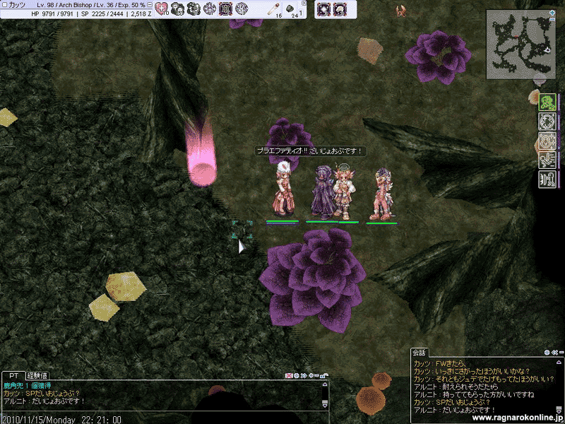 仕方ないのかもしれないですね。ハンタシーフWIZ系、みんな異世界ソロの方が美味しい現状だし。3次だと棚ニア以上美味しい場所はないし。まして私だって、98とか100とか言う人を拾う度胸はない・・・デスペナが痛すぎるんですよネ。「100超えたら、死んでもJobは-50%ダヨ!」とかにならないかなぁ。なるわけないナ。お守り売れなくなりますね。