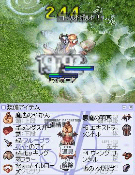 ですが、元々メインにしようー・・・と思っていたゲイズディが驚きの弱さ。発動率は素晴らしいのですが、100~200ダメと・・・・ショボい。氷宝剣が戻ってきたら、ヤナを二つ装備しようと思うのですが・・・・宝剣にはMatkがありません。(現在使っている海東剣には一応INT+3) ちょっと期待できないなぁ・・・・・