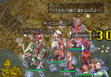 これ↑は、狭間で見たMob。こんなのいたっけ・・・??? モロクの取り巻き??? 商人せっと? とりあえずHLしてみたら速攻襲い掛かってきて自爆された!ガシ!ドン!!アタシは死んだ。すいーつ!!(アイス大好きデス)