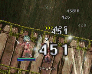 ガラナキャンディ(Hit+5)とグリーンサラダ(DEX+5)とシャルキア呪手×2で要Hitを満たし───てはいないのですが、とりあえず殲滅速度に遅延ない程度に底上げしつつ、サキュインキュのみを狙ってのゲフェ02狩り。ぶっちゃけとっても面白いデス。