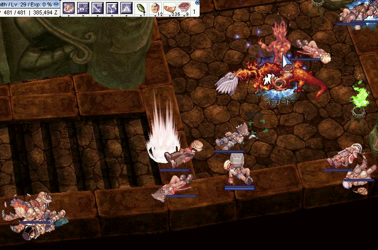 最近、GMの積極的な勧誘により大幅な戦力・支援体制UPが測られている為、パラ・砂2・HP2・HWWIZ・教授・バードというバランスの取れた布陣に。という訳で私はBS。後ろからグリードしながらついていくだけという簡単なお仕事デス。ゴメンナサイ。