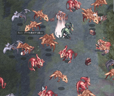 そして今回は、釣さんが・・・! 凄い勢いでMobをつれてきます。常時5体↑。それでも開始5分で、 「今からHPさん追加募集できますか?」 と。 えっ し、支援に何か問題でも・・・ 「いや、HP2だともっと釣って来れるから・・・」 今でも十分な量を釣っておいでですが!?