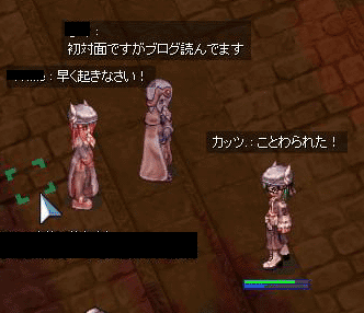 やれやれーと溜まり場へ戻ると、LKが2名。何かハイレベルな会話(ぶるじょあー)をしています。不思議だねぇ、何でこの会話に私が混じっているかね・・・ってくらいぶるじょあじーな会話です。そのままアビスLKペアへ。ソロで出かけてBB場所を確認している、というLKさんはアビスに激はまり中。ついさっき某HPその名も戸田さん(domi命名)とアビスに行って、凄い経験値を叩き出したらしい。でも先に言っておくが、戸田さんとわしを同じHPだと思うなよ? (後ろ向きな意味で)