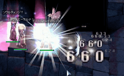 この時はMob5体集めてましたから、5×10で50回復。デスペラ1回SP50.残念ながらデスペラ2~3回は必要なので、消費が上回りますが、それでもブレスとマニピがあればほぼ永久機関となれるはず。ソロだと・・・・・こ、ここはソロで来れるような狩場じゃないヨ;; (AGI型だと意外といけるかも?? 残念ながら私はPT型寄りなので・・・)