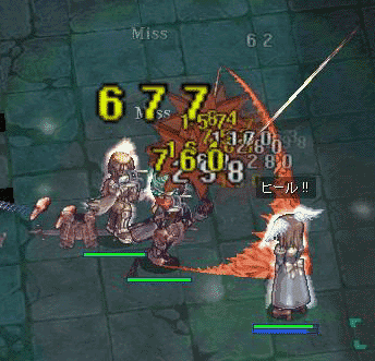 という訳で勇んで出発!───結論。すごく楽しかった。まぁ、良く死にましたがっ。(私3回HWさん2回?)その全てが同じ剣G。我々のストーカーなのかっと思うくらい飛ばした先々で出会いました。ただ・・・倒したヨ!! 剣Gを初めて倒した。私も相打ちで倒されたのはご愛嬌。なんと、打ち合わせなしで無双崩しの流れが始まり、2回目の挑戦で倒すことが出来たのです。これは嬉しかった・・・・・ニュマ→壁誘導SWサンク→SG→FW→SG、HP移動が打ち合わせナシで出来ました。(私の死んだ原因は、移動中に1マス岩セルがあって移動がずれたためOTZ 見た目平地だったから油断した・・・・あれが無ければ生きていられた・・・・)