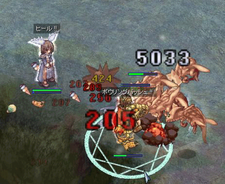 ただ、やはり忙しさは当社比2倍!! 普段、アイテムは私と教授さんが拾うのですが、そのアイテムを拾う暇もないくらい忙しい。また次から次へと釣がMobを持ってくるので、教授にヒールを飛ばす間が無く、敷かれるサンクにつかりに教授さんが右へ左へ移動するのがちょと可哀想&可愛かった^^;ゴメニョー