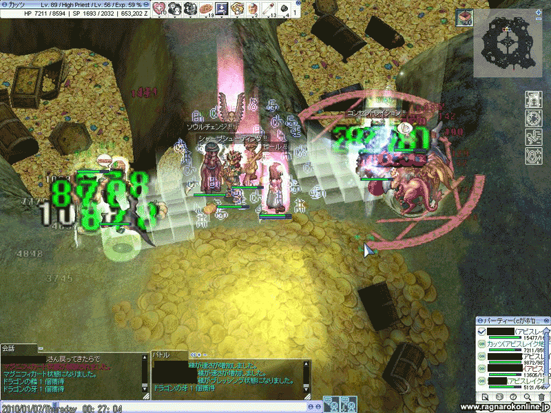 G狩りと思しきPTが決壊し、ドラがこちらのベースになだれ込んできた時だけはちょとヒヤっとしましたが、教授さんが超・反応でSWを出してくれるので助かりました。
