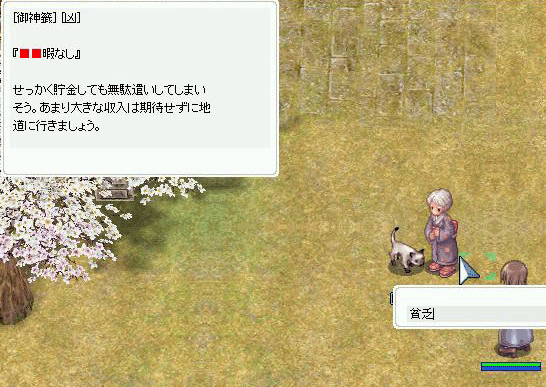 色々驚いた。結局、「アビスは竜ばっかりのダンジョンで、Mob全部がMdefが高いので魔法が通らないから云々」と説明しお断りしました。──────んー、でも、ちょっと残念だったかな? 別の狩場に変更したらよかったかなぁ・・・??