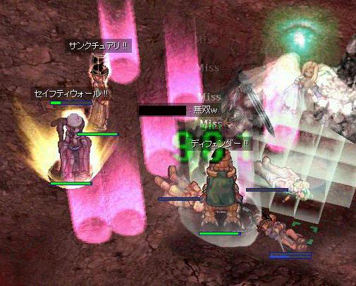 トール3F。壁あり教授あり♂HPありHWあり鳥あり(この人上手いんですヨ)の所謂鉄板構成。私?寝てましたが何か? (これは剣G弓G×2をこなした所に再び剣Gが突っ込んできた瞬間だったような・・・)(中心の岩柱?オブジェクトのせいで射線、セルともに壊れまくりでした)