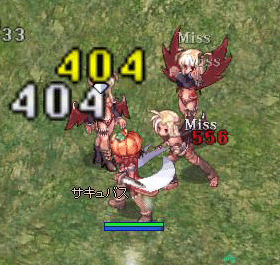 もっとも、AGI先行DEX30止めのりんごの攻撃があたるわけも無く、何と驚きの前衛です。それなりに避けた&偉大なかぼちゃバリアーのおかげで、案外さくさくピンギを狩ることが出来ます。