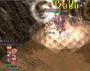 久々にアドラME狩りです。実は隣のABさん。狼氏です。INTカンストでかつアドラMEに生まれ変わったとのコト。わくわくですね。ダブルアドラ。威力も高いしお財布にも優しい!! でも天使・精霊だけはやめてください。