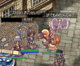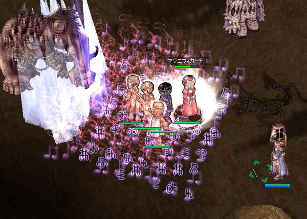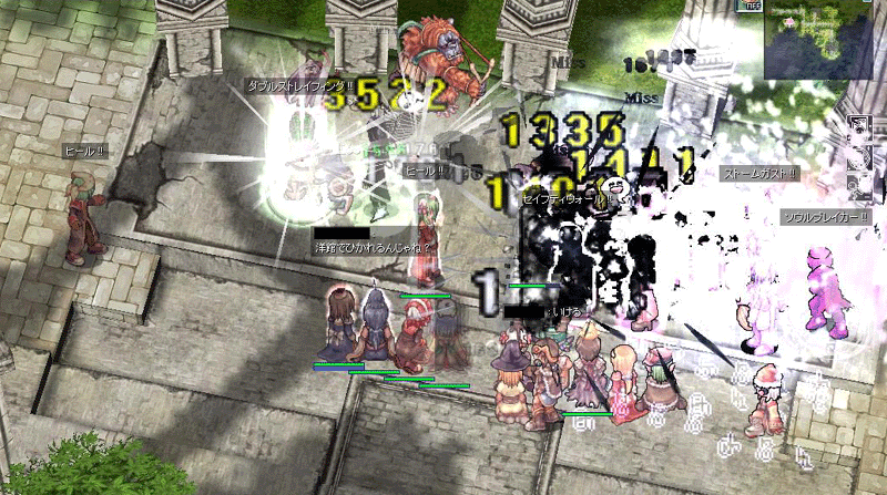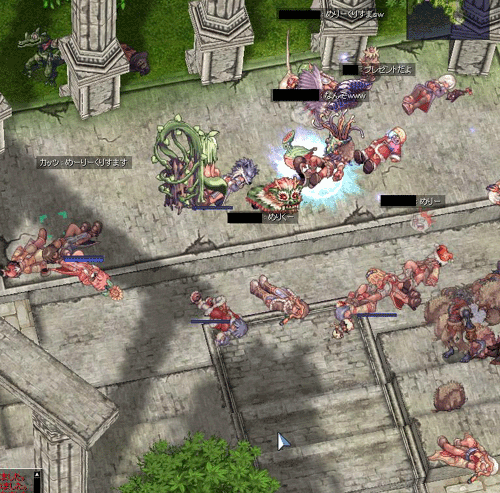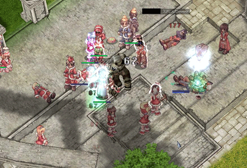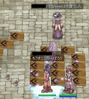 でも、そうもいかないのが小部屋に分かれる階層!!なんとHP2・LK・HW・冠だけという少人数でタナ・キエル等のMobを相手にすることになってしまいました。一見バランスよさげですが、なにせHPバーが見えない人達と突然一緒に戦うことになるから、サンク・ニュマ・基本支援・SWSWSW・・・・あっSPなくなった!!カボチャ!カボチャ!! あっHP一人消えてる!? てかHWもいない!! 冠とLKだけにな・・・・・・・あーっ!!!