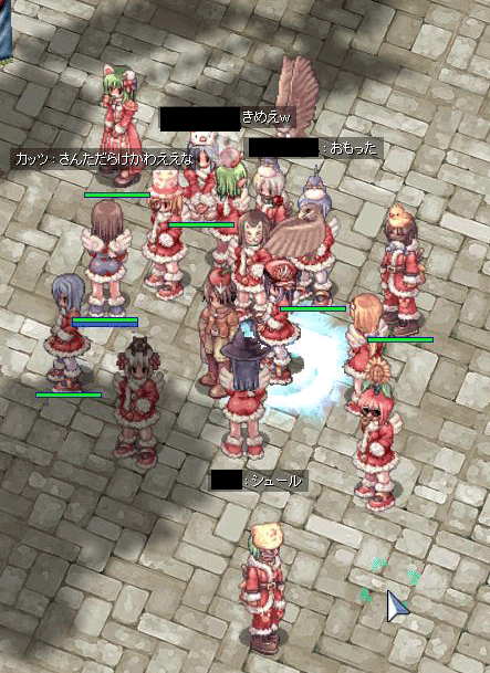 そういえば血枝って何が出たんだろう? Dop様だったような気がするけど・・・・・まぁ、無事終わってよかったよかった。さぁ、記念撮影しましょうか。えっ・・・さ、サンタコスですか・・・・えぇぇぇ・・・染色サンタってセツナイんですが・・・・・OTZガンホ許サネェ