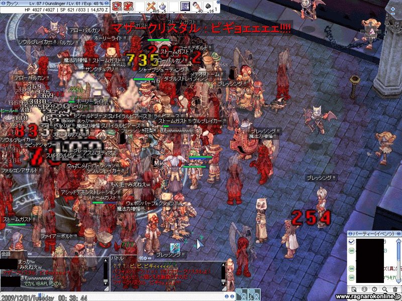 しかし、清算途中で黄文字・・・・・お願いして清算を中断してもらいました。毎年のROアニバイベントでは、主要都市にバフォ様が襲来しています。丁度時間も23:55. まもなく超・重力発生するのは間違いないところ。バグやサバオチでアイテムロストの多発時間。怖いですからね・・・