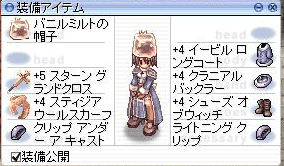 折角あったお金も、何か相場間違えてすっからかん。+5スターンGXがソレです。切ないなァ・・・でも、案外な確率でアヌがスタンしてくれますネ。AGIモンク・プリさんなら使いこなせる一品だと思います。どうですか。