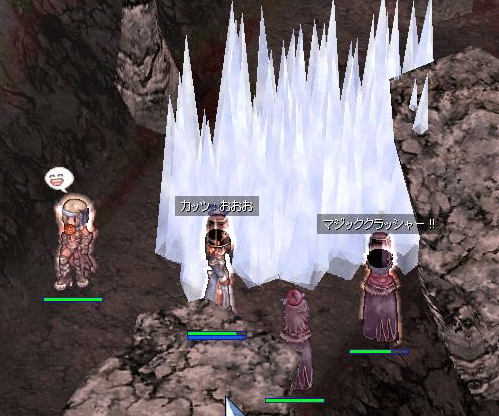 原因としては、前衛(♂HP)との距離をしっかり開けて歩くようになったこと。無理な時は助けに行かず見捨てること。壁をしっかり歩くこと・・・なのかなぁ? そして何度か組んだことにより、お互いの呼吸があってきたコトが第1かもしれない。私とHWさんの呼吸は壊滅的ですが。なんたってこの人、IWの中に、私をカーサと一緒に閉じ込めたんですヨ!!死ぬわ!(死んだケド)(「見捨ててやる!」「こっちこそアスムやらねぇ」が会話で出てくる氷点下の仲です)(でも案外♂HPさんの言う事だって黒いんだぜ・・・)