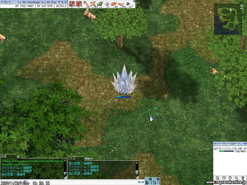 他はペアでGD3f、PD、氷Dも行ってきました。氷Dはないな。堅すぎ。PDは流石の美味しさ。中々良かったのはGD3F。SP回復剤の消費は酷いケド、まったり狩りを許してくれるHPさんとなら狩りになりそう。勿論、高レベルキリエのあるプリさん、ご一緒しませんか?ホドC狙いましょー!