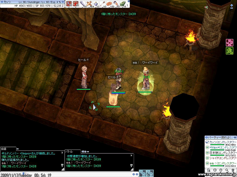 なんと言う再びの即答。ノーグ2FからそのままHWさんと時計ペアです。しかし、コレが転生後初めての時計・・・転生前って大抵トリオ(前・支・魔)だったから、VITもなし大丈夫かなぁ・・・・・・と不安になりましたが、案外行けました。WPくぐった瞬間BMが切れて一回死んでしまいましたが(ごめん;;)、その後は危なげない狩りになりました。