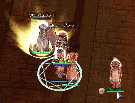 アヌにデスペラ2発。倒すのは必ず拳聖さんになるように調節することに。雑魚はまとめてデスペラ。アヌ交じりの時は雑魚のみラピッド・・・・奇跡にはSPを使うので、教授さんは更に仕事が増え大忙し。プリさんもHPが少ない拡張1次が二人とあってヒールに大忙しです。その上アスペ。ごめん、ごめんよぉー───・・・・