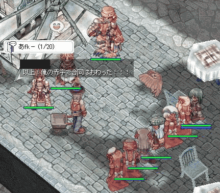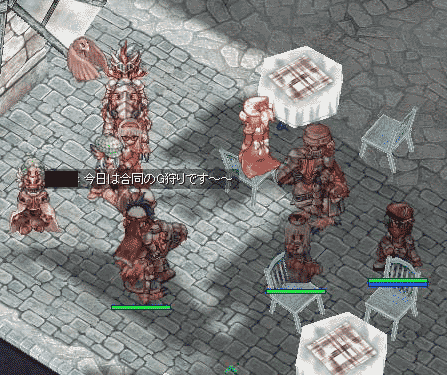 HP4人、LK3人という豪華な構成・・・・ですが、なんか私一人浮いている・・・・拡張1次職にも、2次がこないかなぁ・・・きたらなんだろう??やっぱ、ガンスリの上位だからスナイパー?───って、それ弓やんけ!! やっぱコマンドーかっ。(その予定はアリマセン)