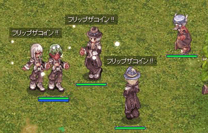 | 習得条件:なし 最大Lv:5 小銭を弾いて、表が出ればコインが1枚手に入り、裏が出れば1枚失う。 コインは10枚まで集めることができる。 スキルレベルが上がると表の出る確率が増える。 スキル使用時、1ゼニーを消費する。 |