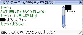 この後、「中古装備ありませんか・・・」と切り出し、+7荒野を売っていただけました!! うれしい~~;; まだ装備できないけど、大事にします;;ありがと!!