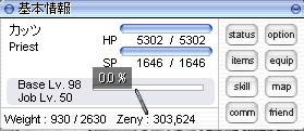 休止も含め続けてきたRO人生で、初めてのオーラロードです。100Mの世界?らしいです。全く経験値とか見てないので未だによく分かりませんが、確かに上がりにくくなってる気がします。
