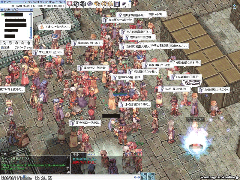 ベルの臨時は1hが基本ですが、個人的には30分だけの短時間臨時もいいもんです。「ちょっとだけPT狩り・・・」「30分だけ必死狩りしたい・・・」でも遠慮はいらないので、どんどん拾ってくれると嬉しいです。それがBS(WS)さんだと更に嬉しいですグリード万歳!!