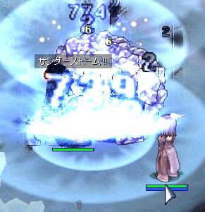 槍騎士さんです。AGI。サンダーストーム連発はゼピュロスを使っているからですネ。さすがAGIなだけあってしょっちゅう落ちてますが、いかんせんINTが初期値らしくダメは1.2.3です。でも派手なんで好きです。
