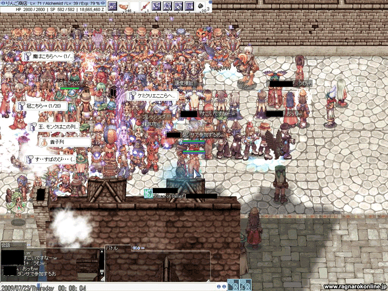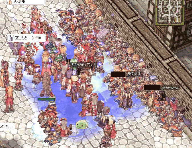 どうも突発に並び始めたこの祭り、あまりの盛況ぶりに、やはりというか枝も折られたのですが、何せ転生職中心でこれだけの人数です。あっという間に制圧されてしまいます。以下、ちょっと心に残った発言集(うろ覚え)↓