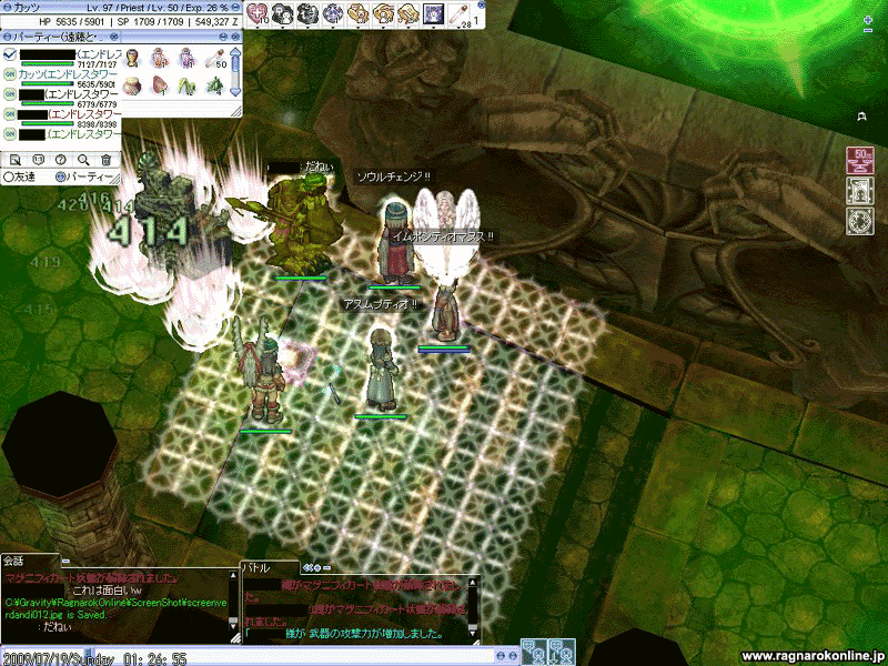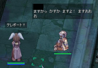 この方は以前組んだことがあります。チャットで落ちているトコを拾って、「以前も組んだね」と言われ、最初は思い出せませんでしたが、「プリーストの魂」を貰って思い出しました。プリ魂もらったの、一回しかなかったから!!