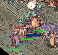 ・敵前衛アドラの順番で、一直線に整列する。敵を前にペアが並列すると、アドラプリに敵が向かってくるので厳禁。