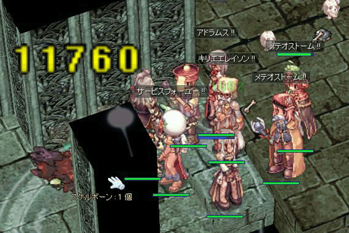 しかし、現在の774でのWizさんの主力魔法はメテオストーム。SGの時も画面が光って何が何やらーでしたが、今は更に揺れまくるので流石にPCが重く、エフェクト切ってました。ホントは、エフェクト切りはあまり好きではアリマセン。かといって/cameraでは、何故かウチのPCがカクカクしだすのです。わてほんまによーいわんわ。