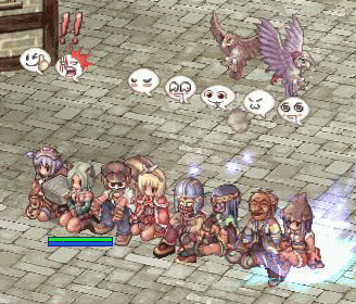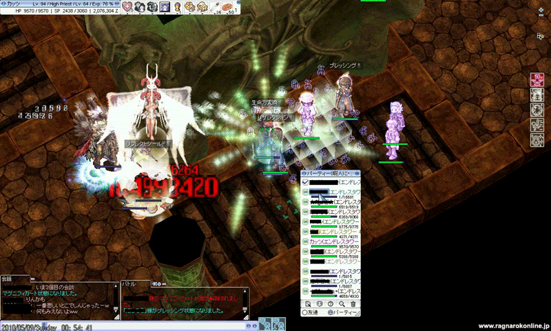 最近、GMの積極的な勧誘により大幅な戦力・支援体制UPが測られている為、パラ・砂2・HP2・HWWIZ・教授・バードというバランスの取れた布陣に。という訳で私はBS。後ろからグリードしながらついていくだけという簡単なお仕事デス。ゴメンナサイ。